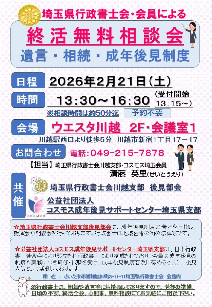 ※この内容は、配布チラシ(2026年2月21日 ウエスタ川越 終活無料相談会)に基づいてご案内しています